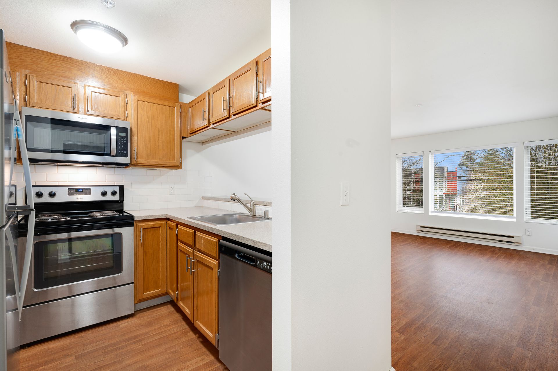 • Wood-style floors in living room and kitchen