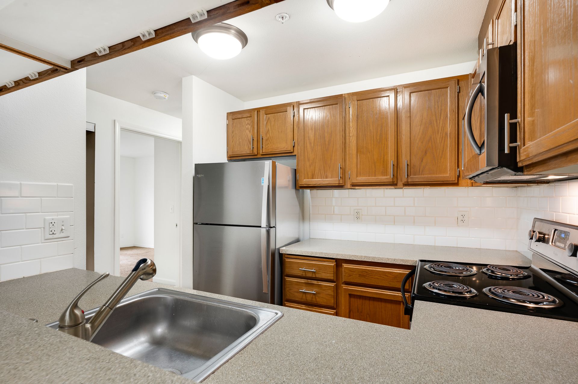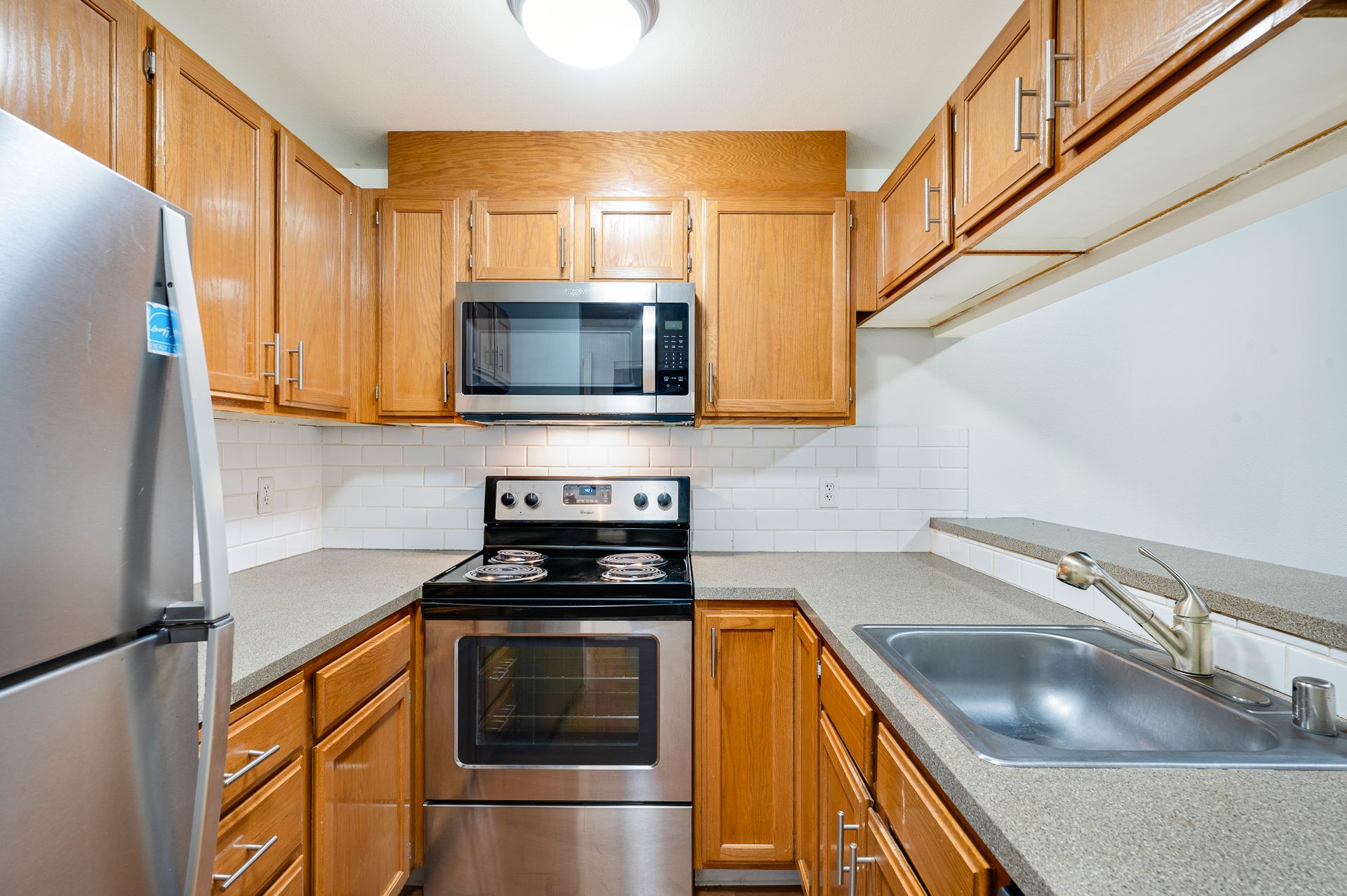• Stainless steel appliances (microwave, dishwasher, fridge)